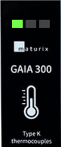 Gaia 300 features three LED indicators, each corresponding to the type K thermocouple connectors.