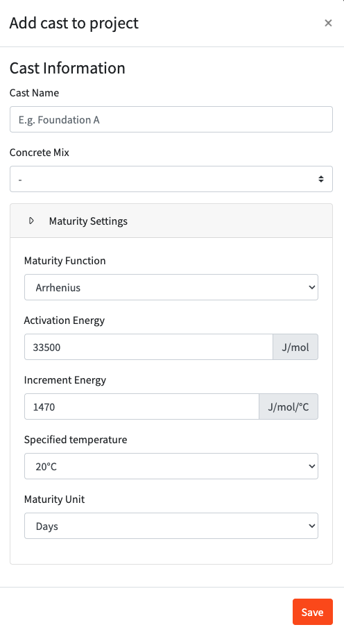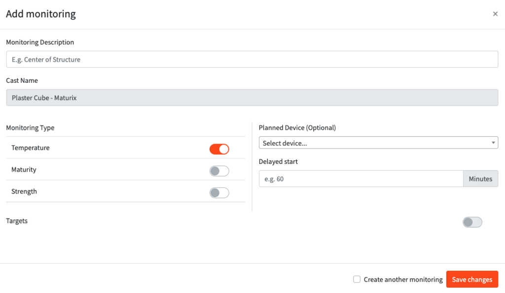 - Monitoring Type: Choose between temperature, maturity, and strength