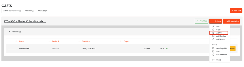 - Confirm that you want to archive the cast in the pop-up box
