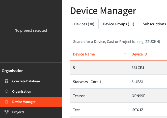 3. Find the project you want to add devices to.
