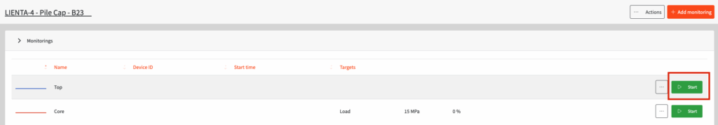 - Find the monitoring you want to start and click on the green “Start” button
