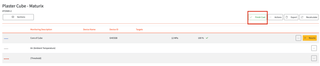 Once all the monitorings on a cast have been stopped, you can finish the cast report.