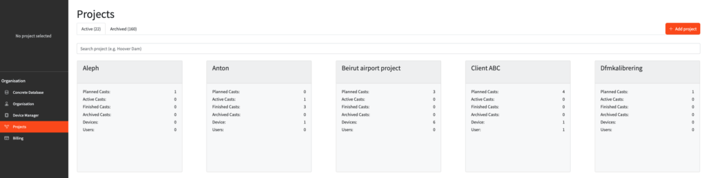 The first page you see after logging in is the “Projects” page. This provides you with an overview of all the projects you have access to. Here you are able to: